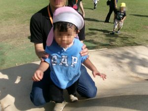 こちらは、坂をよじ登る遊具に挑戦中!この後、頑張って頂上まで登れました!