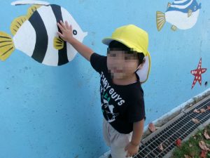 色々なアートの大きな壁もありました。「お魚見ーつけた!」