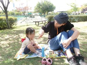 ブログ10月15日、天候になんとか恵まれて、玉島の森公園に親子遠足に行ってきました。