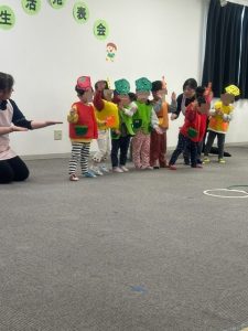 うたあり、セリフあり、一人ずつ披露するトントンパ(ケンケンパの両足バージョン)あり、見どころたくさんでした。劇が終わって、舞台袖に帰ると、「先生、楽しかったよ!」という言葉もとびだして、楽しんで挑戦できたことに、成長を感じさせてくれました。